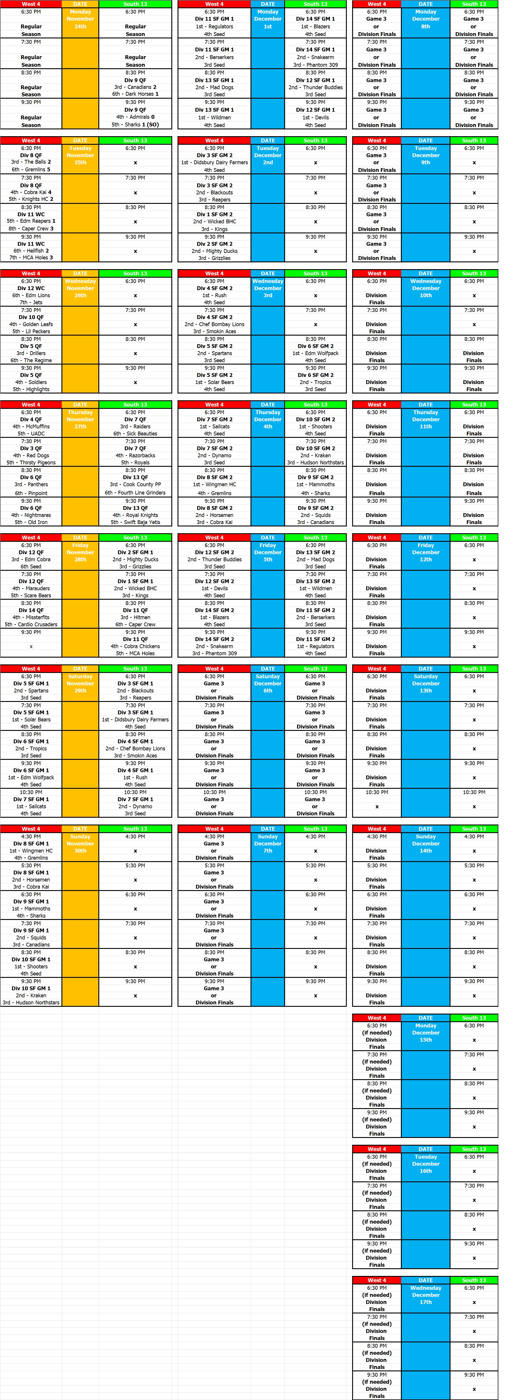 2025 BHE1 Fall Playoff Schedule - Following Games on Nov 25